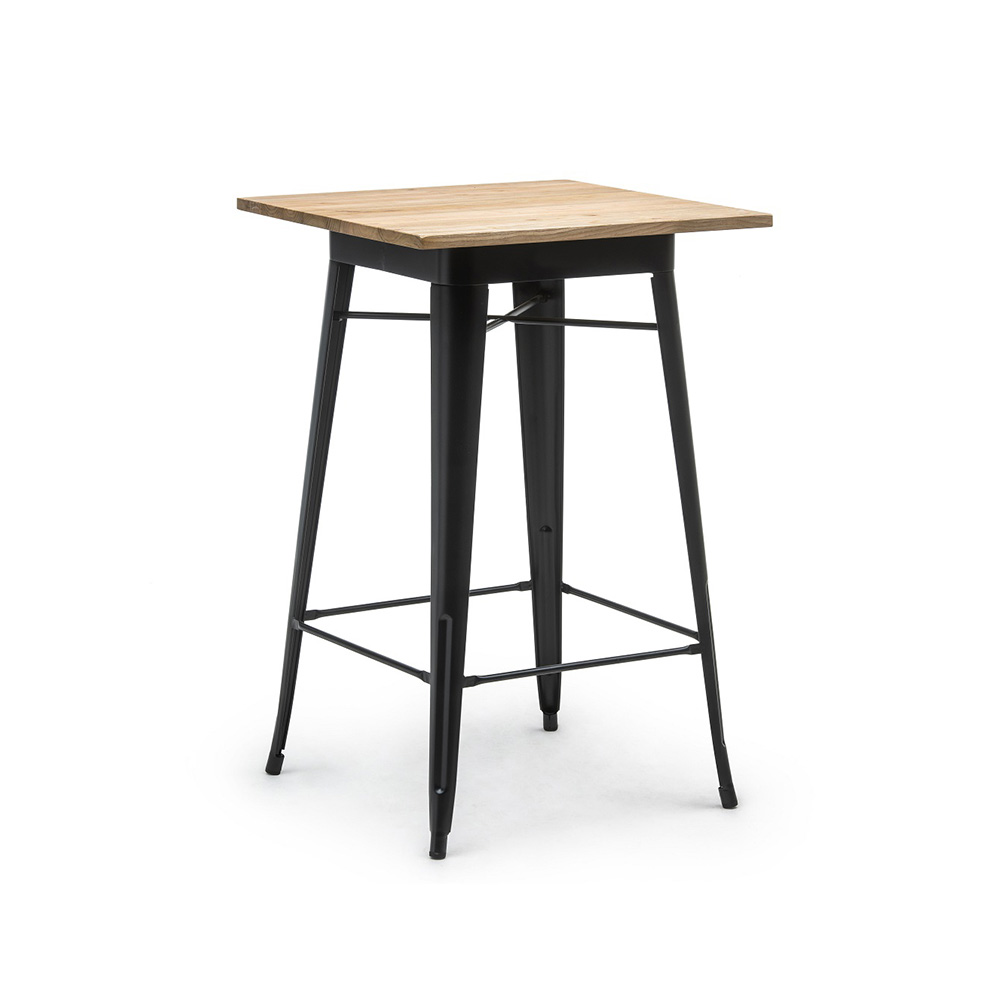 Stehtisch Tolix SCHWARZ mit Tischplatte Holz – B70*T70*H108cm