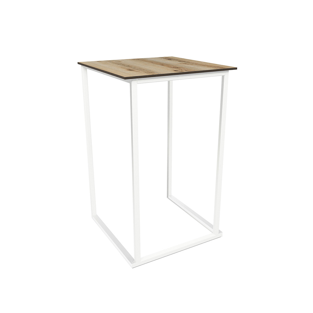 Stehtisch Kubo Smart WEISS mit Tischplatte EICHE – OUTDOOR – B70cm*T70cm*H110cm