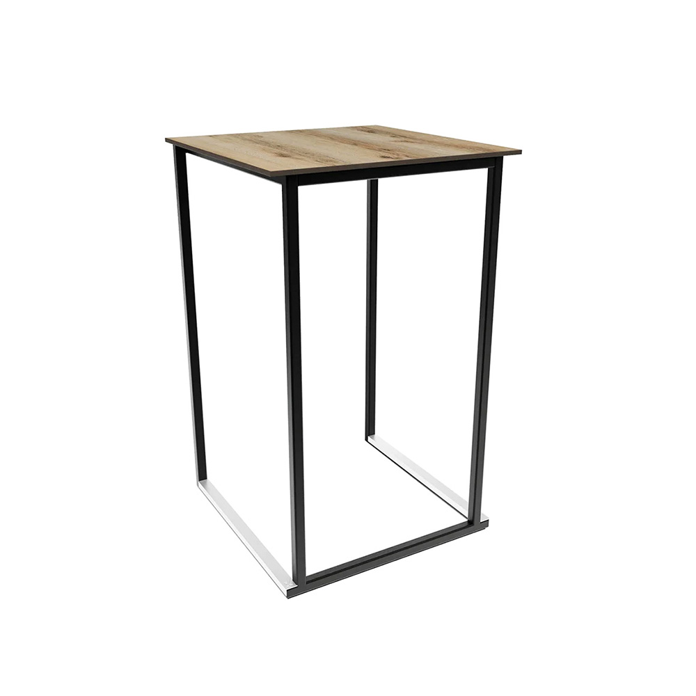 Stehtisch Kubo Smart SCHWARZ mit Tischplatte Eiche Dekor – OUTDOOR – B70cm*T70cm*H110cm