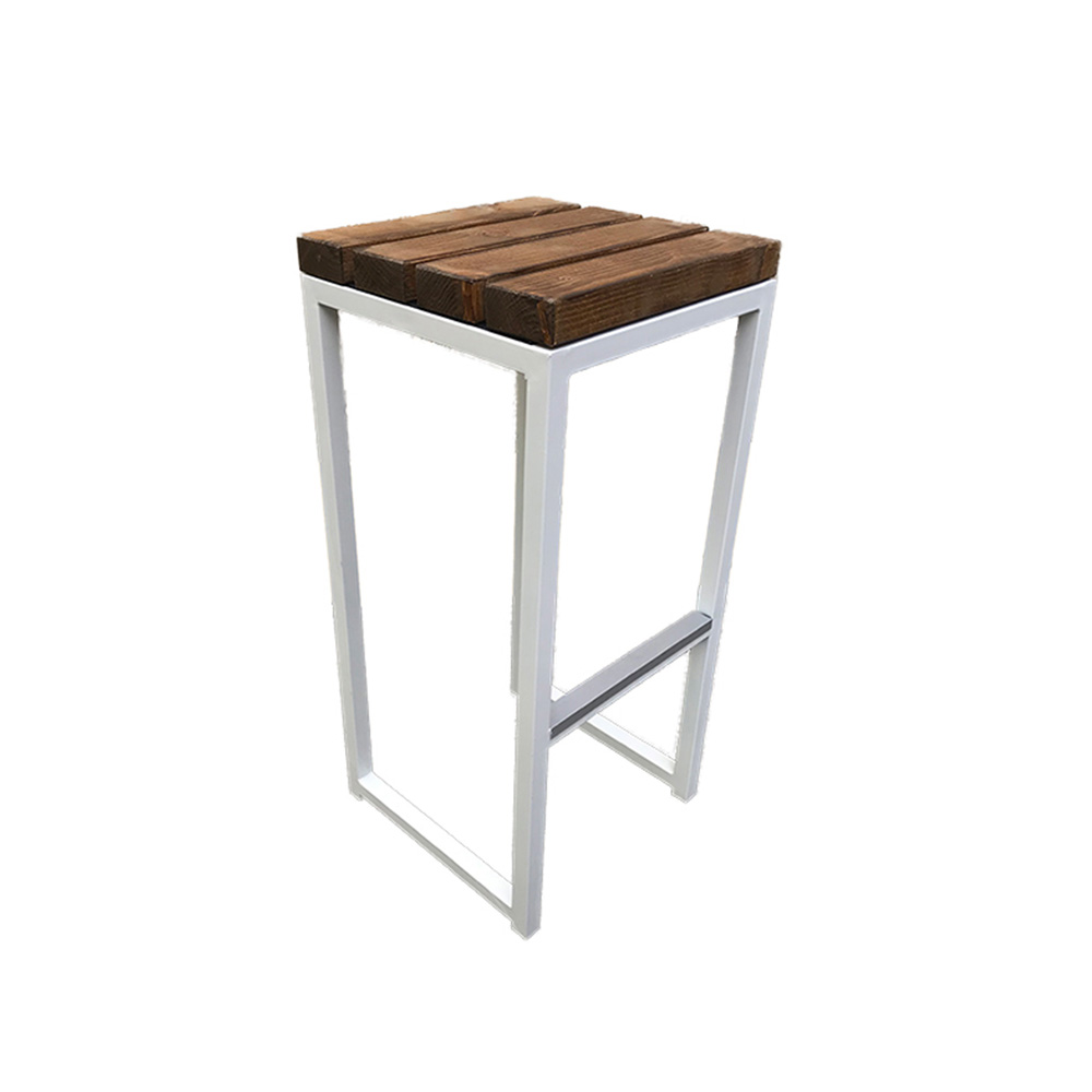 Barhocker Kubo WEISS mit Sitz Holz NUSSBRAUN – B35*T35*H76,5cm