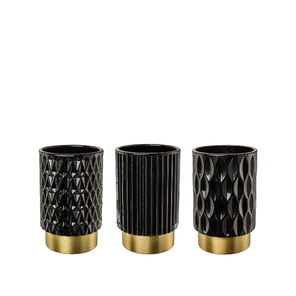 Windlicht Glas Gracia mit Metallfuß GOLD/SCHWARZ – B8,5cm*T8,5cm*H13cm