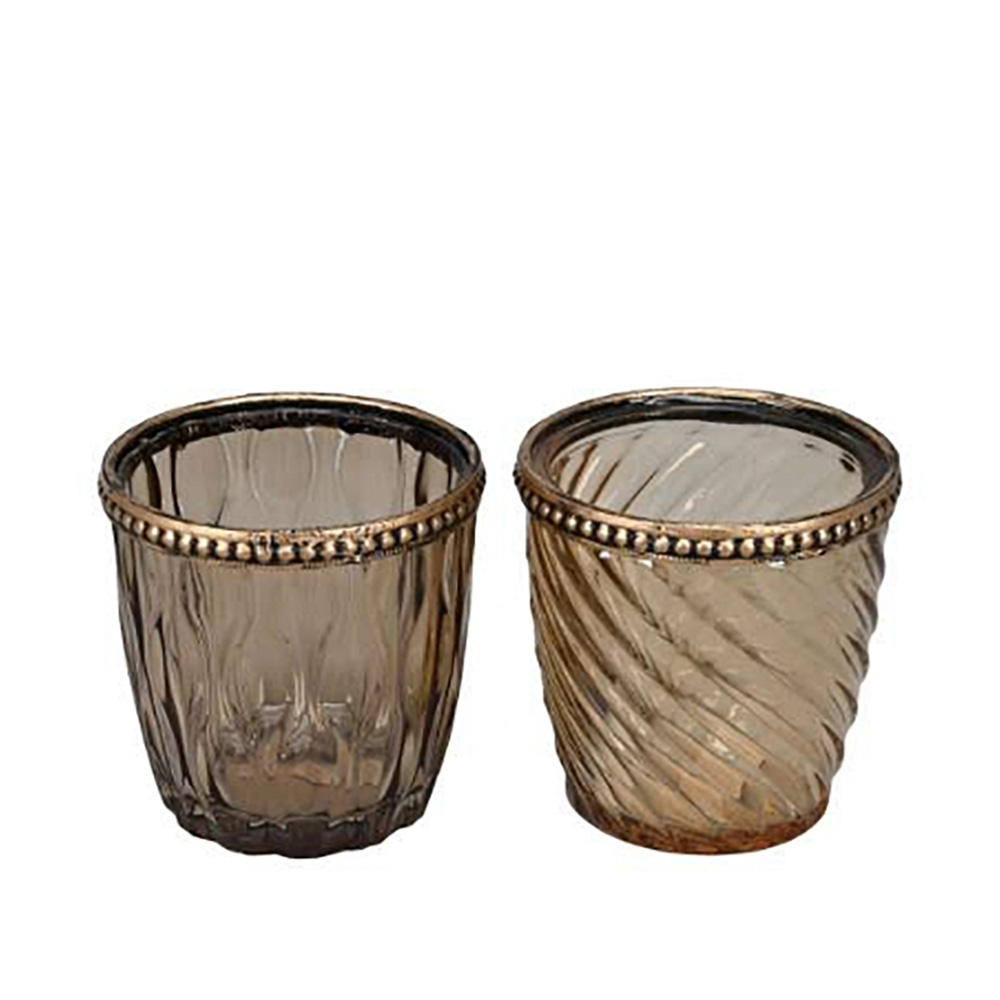 Windlicht 2 Mod. Metallrand BRAUN – B7,5cm*T7,5cm*H7,5cm