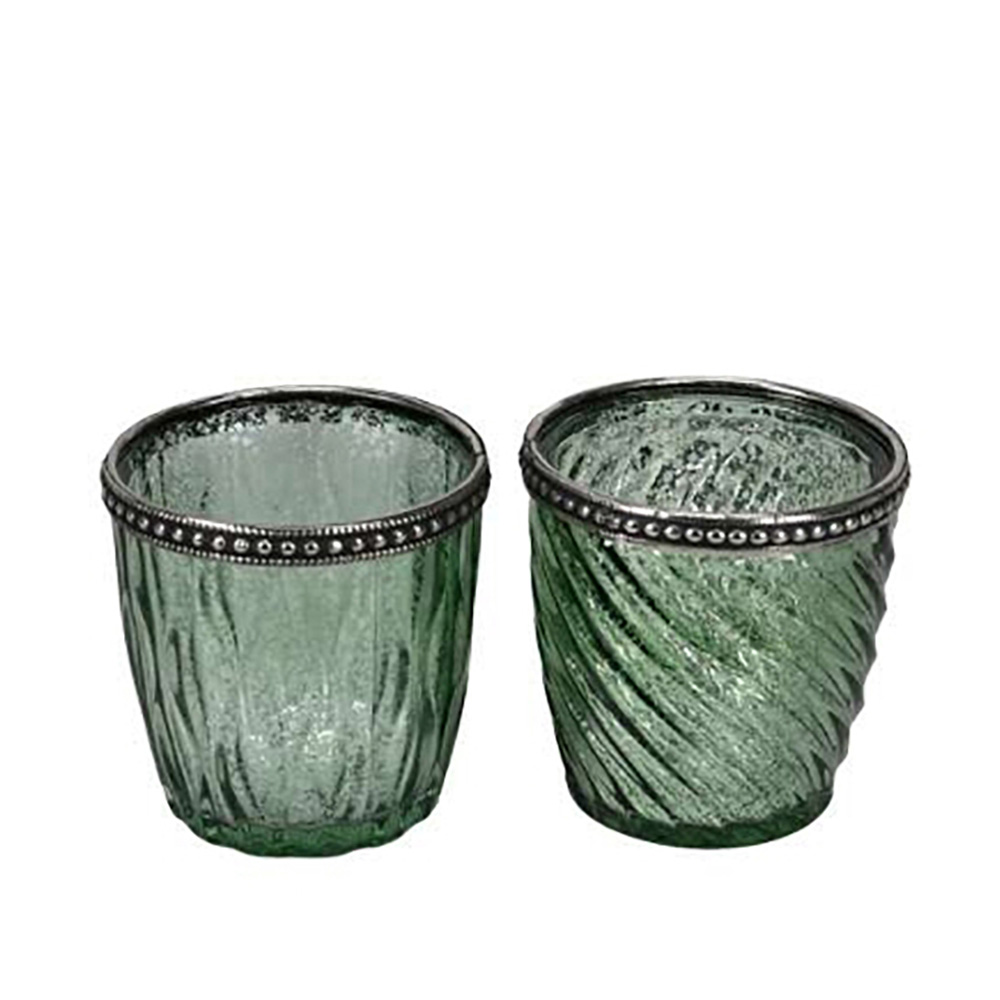 Windlicht 2 Mod. Metallrand HELL GRÜN – B7,5cm*T7,5cm*H7,5cm