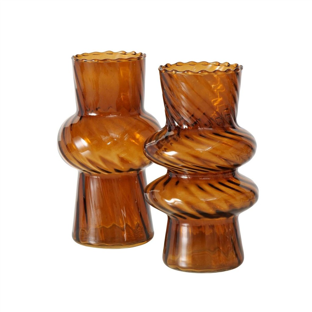 Vase Glas Leonas Gedreht BRAUN – B11,8cm*T11,8cm*H20cm