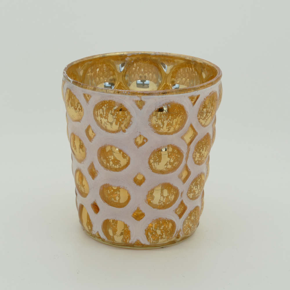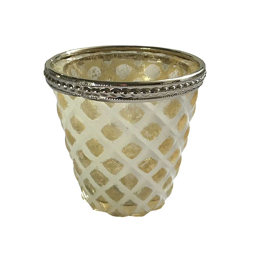 Windlicht Glas Nepal WEIß/GOLD – B9cm*T9cm*H9cm