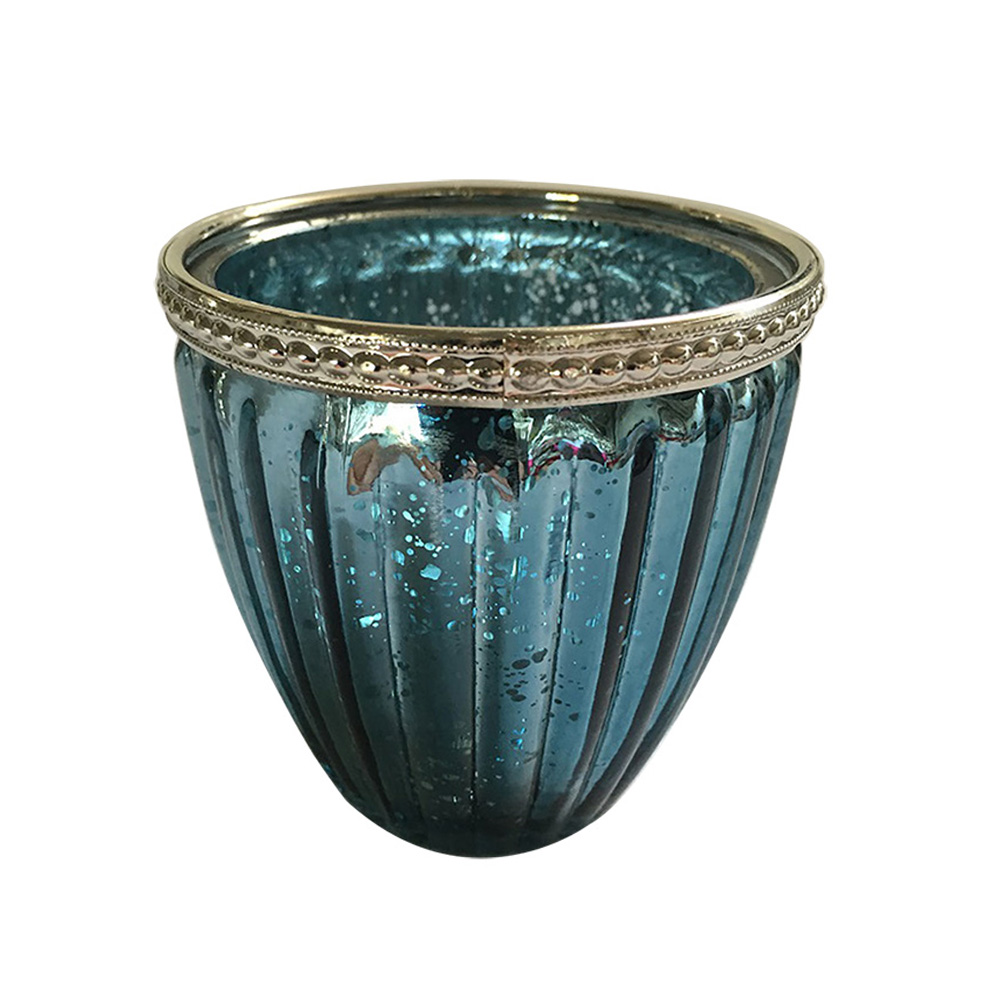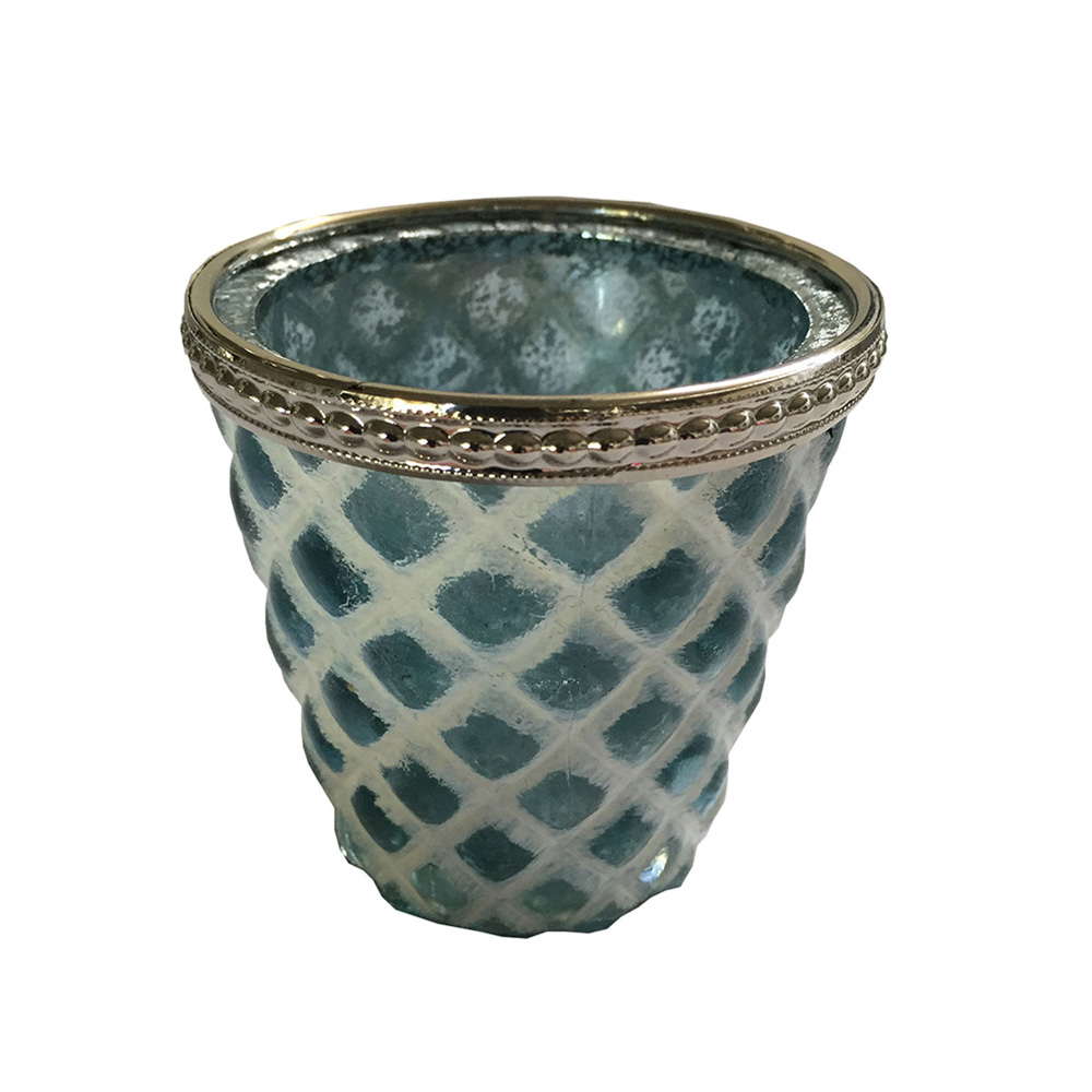 Windlicht Glas Princess Metallrand BLAU – B99cm*T9cm*H9cm