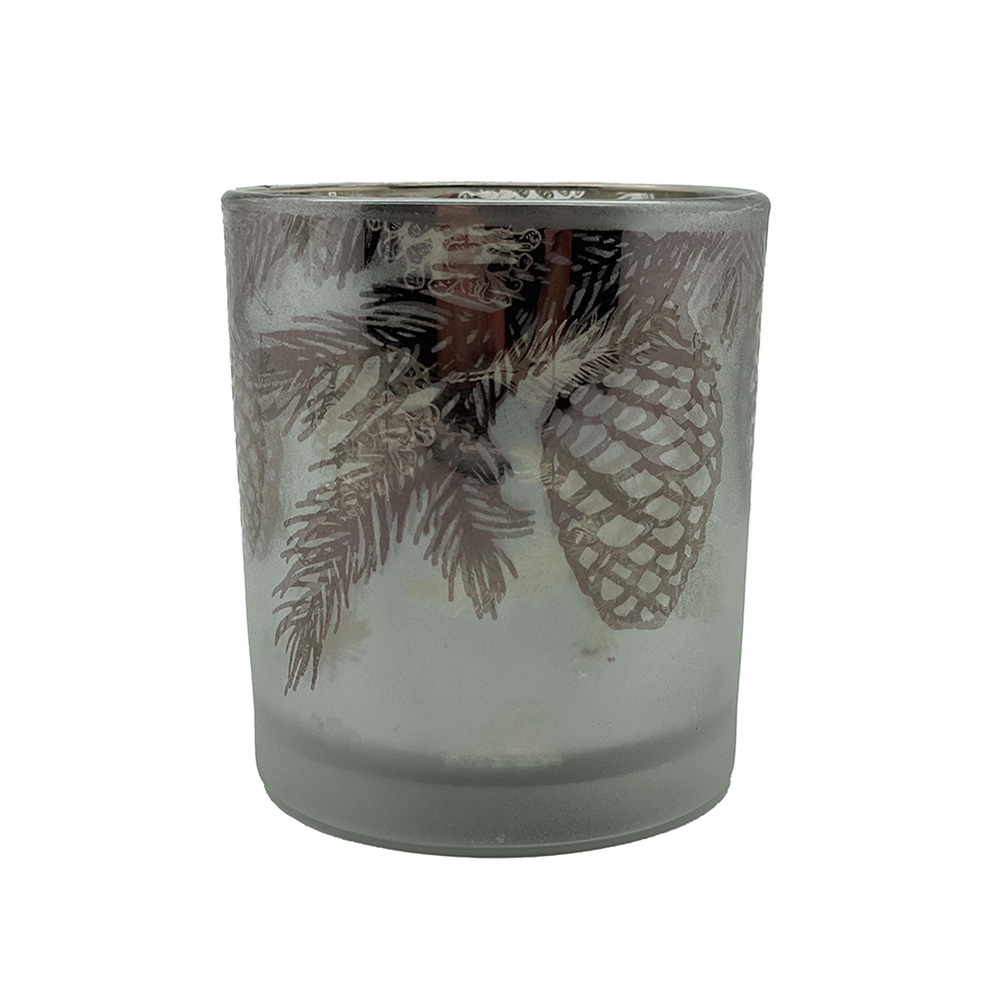 Windlicht Glas Tannenast SILBER – Ø7*h8cm X-Mas