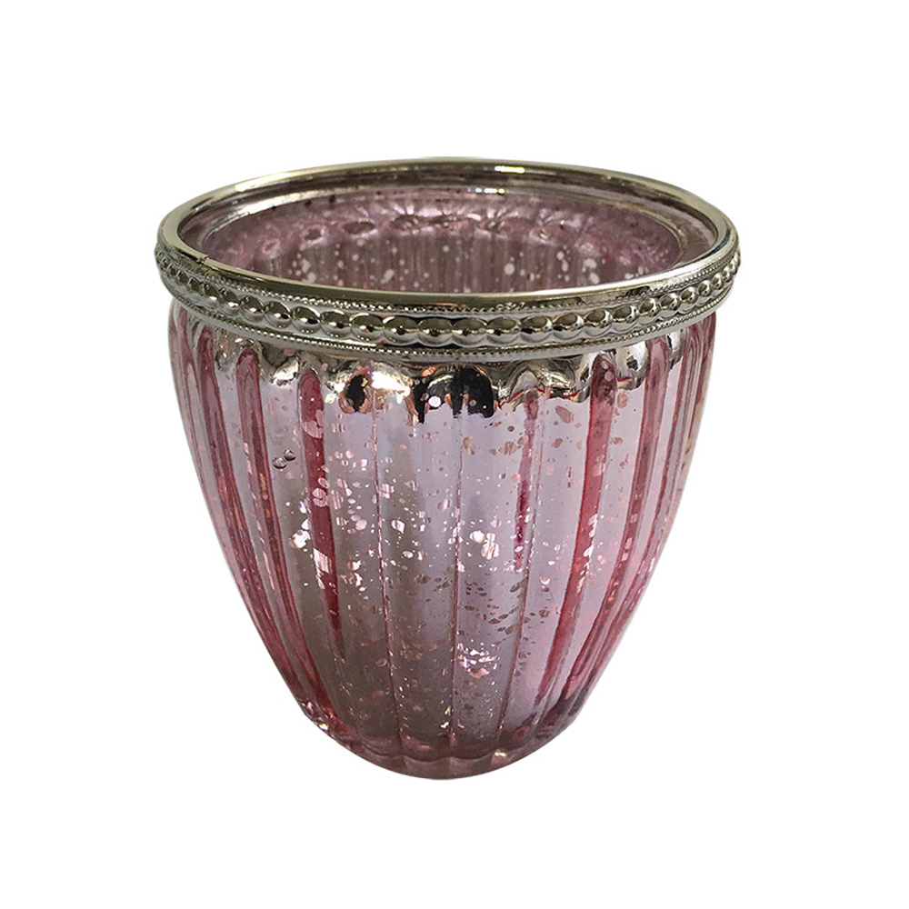 Windlicht Glas Princess Metallrand ROSA – B9cm*T9cm*H9cm