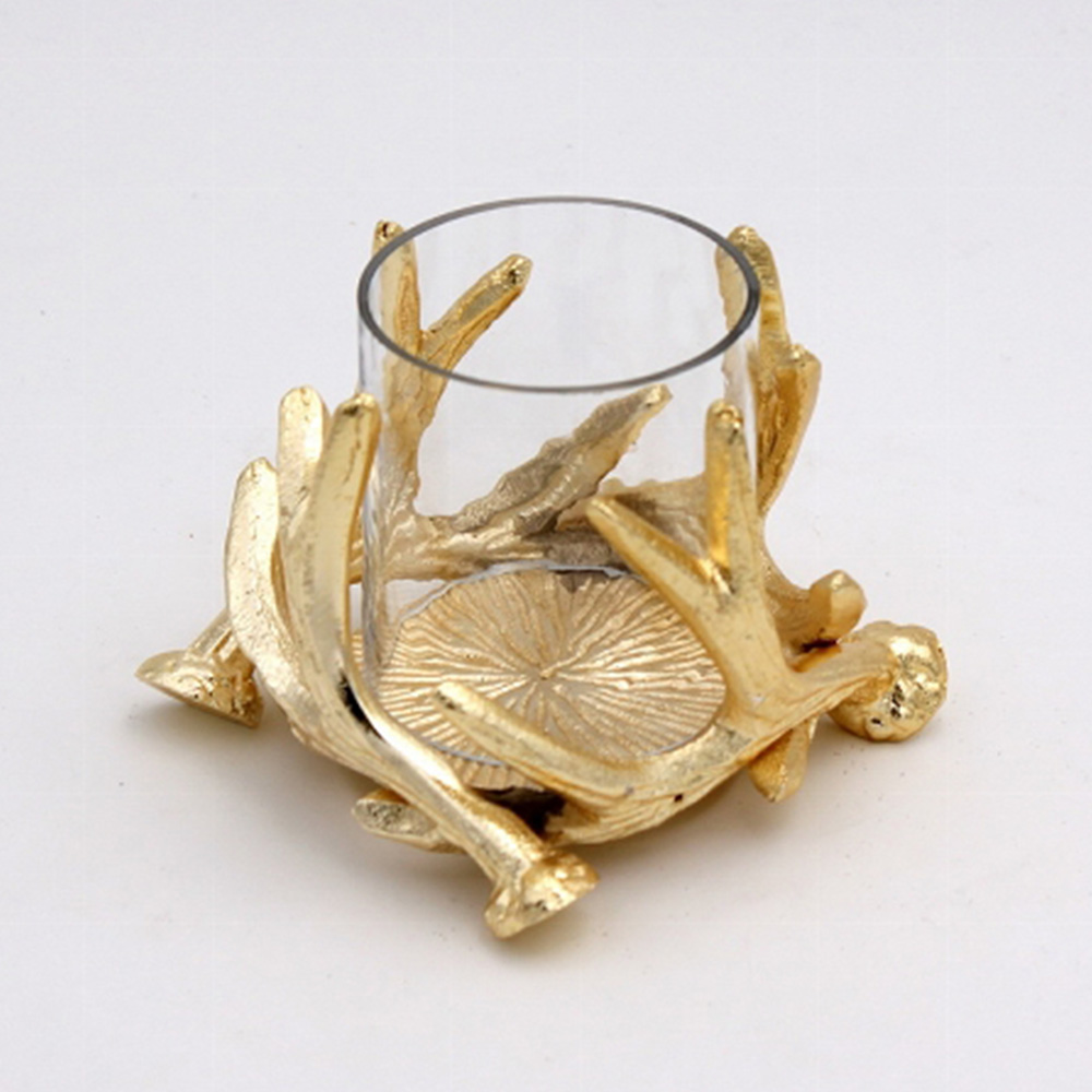 Windlicht Glas- Geweih GOLD – B14cm*T14cm*H9cm
