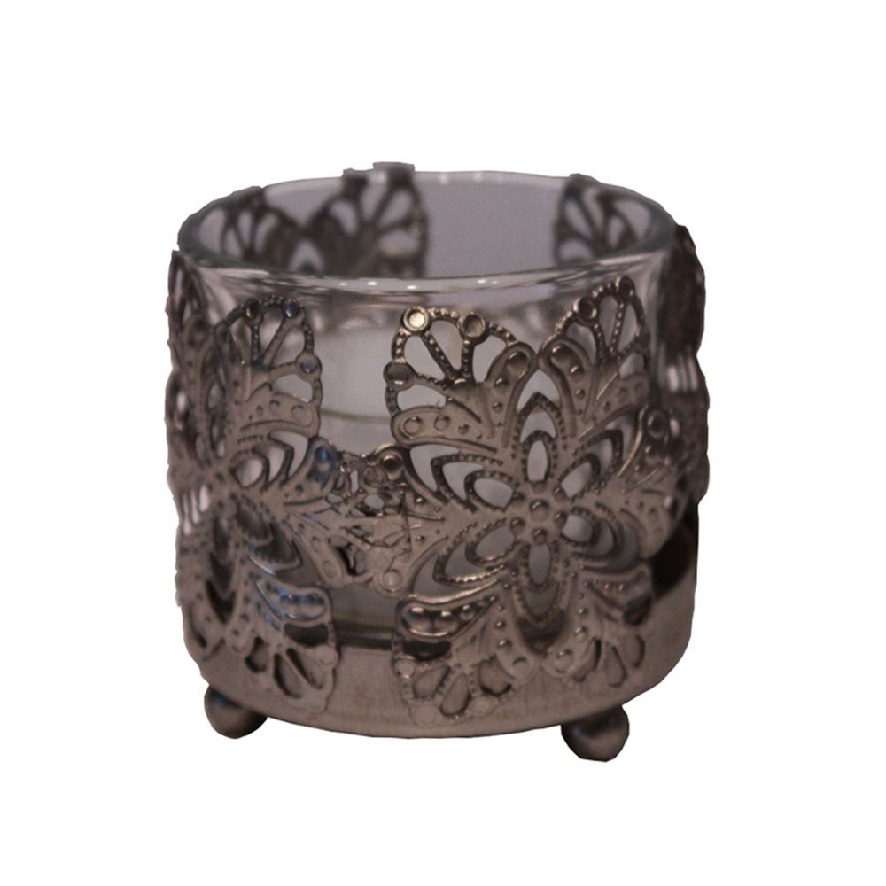 Windlicht Metall Alhambra mit Blumen-Motiv BRAUN – B6cm*T6cm*H6cm