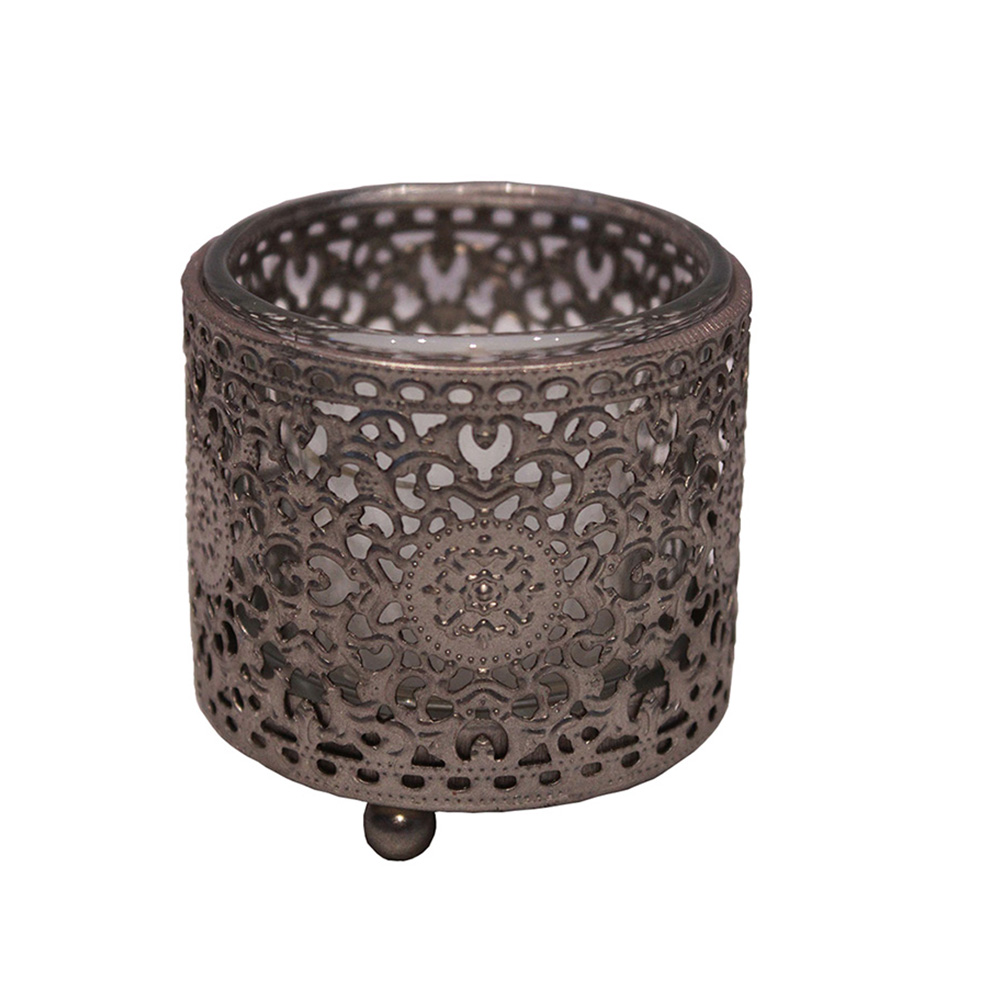 Windlicht Metall Alhambra mit Sonnen-Motiv BRAUN – B6cm*T6cm*H6cm
