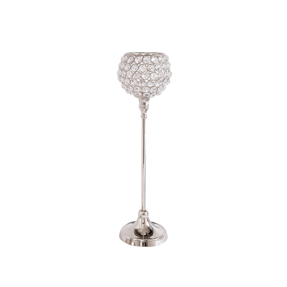Windlicht Metall Diamant auf Fuß SILBER – B13cm*T12cm*H42cm