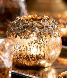 Windlicht Glas- Geweih GOLD – B14cm*T14cm*H9cm