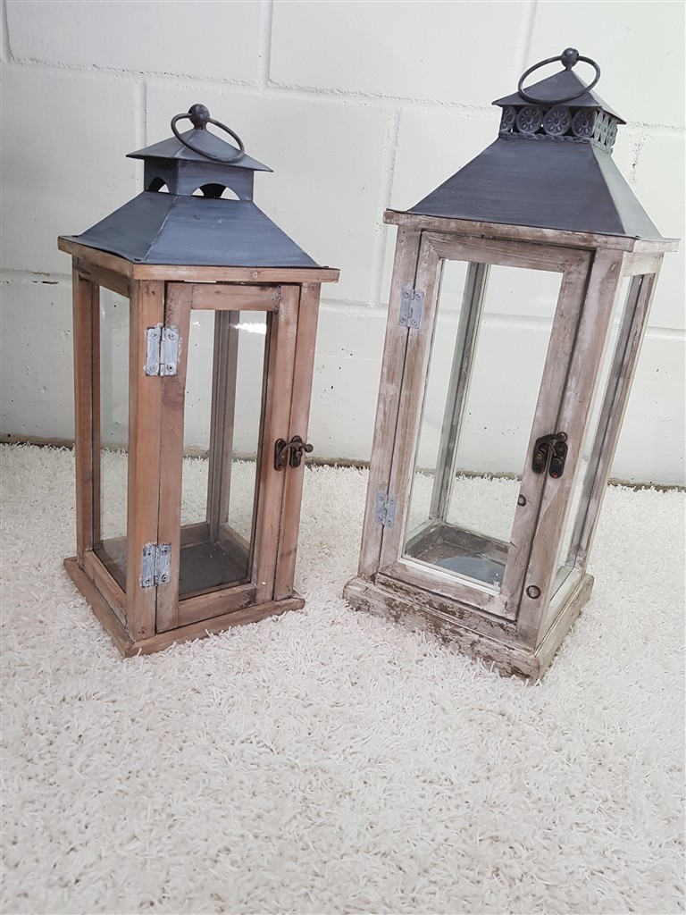 Holzlaterne Stonewashedfinish GRAU/BRAUN – B19cm*T19cm*H48cm